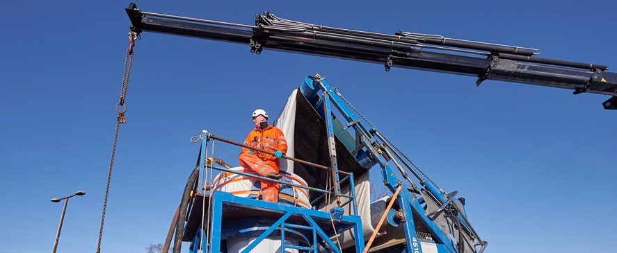 140 ton tung strømpe bliver trukket gennem kloakken på Ørbækvej