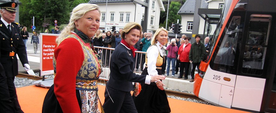 Tirsdag 22. juni 2010 steg Norges Dronning Sonja som den første ombord for at køre en tur med Bergens splinternye letbane, Bybanen. På denne dag åbnede de første 10 kilometer spor gennem ’Vestlandets hovedstad’ nemlig.