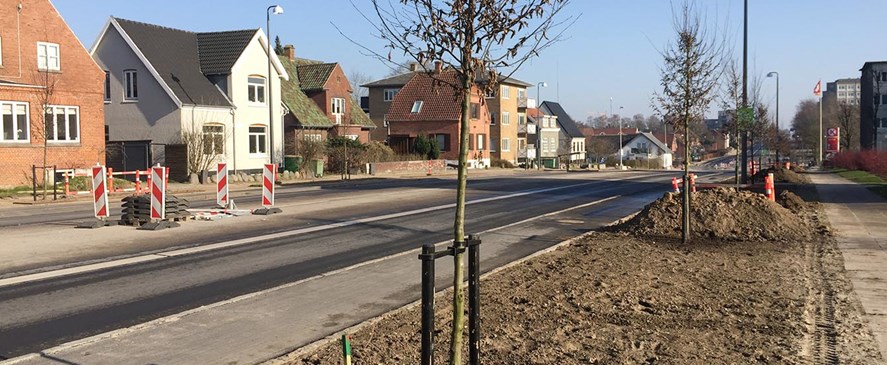 I løbet af vinterferien er der plantet nye træer langs det kommende letbanespor på Nyborgvej.