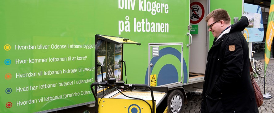 Læs mere om Odense Letbanes mobile udstilling på odenseletbane.dk/udstilling.