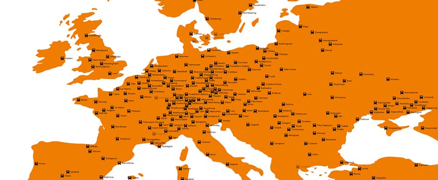 Kortet viser, at i hvilke byer, i Europa der findes letbaner. Særligt Tyskland og Frankrig skiller sig ud med mange systemer, men også i det tidligere Sovjet er der stadig mange af de gamle sporvogne i funktion.