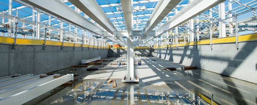 Snart bliver det endnu mere tydeligt. For de næste opgaver bliver at lægge tag og rejse facaden. Derefter bliver der støbt gulv, opbygget vægge og lavet forskellige installationer, ligesom der bliver ført spor ind i bygningen, så letbanetogene kan komme ind.