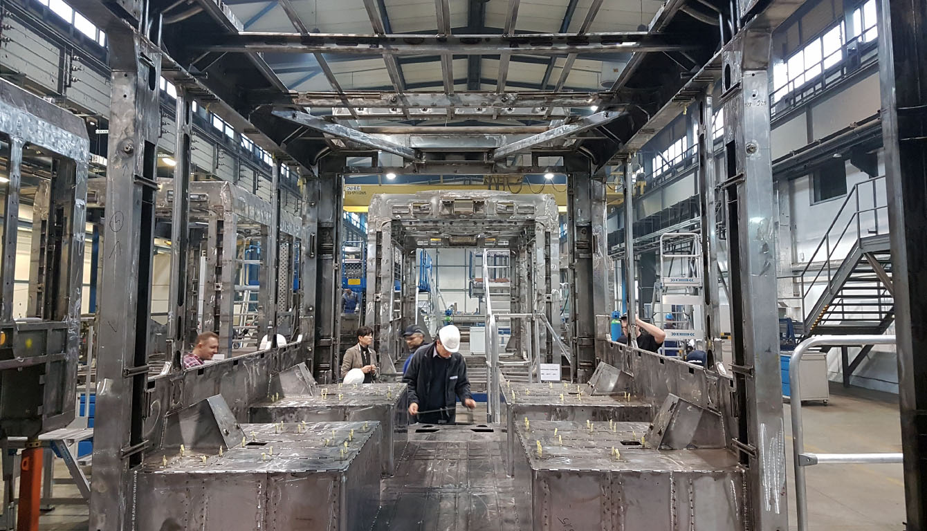 De rå stålchassiser bliver sandblæst og eftersvejset i Reinickendorf – og derefter malet. Der er dog ingen dele af chassiset, der er synlige, når først der er monteret yderbeklædning, vægpaneler, loft, sæder, vinduer, døre, bogier (hjulkasser), førerkabine og så videre.
