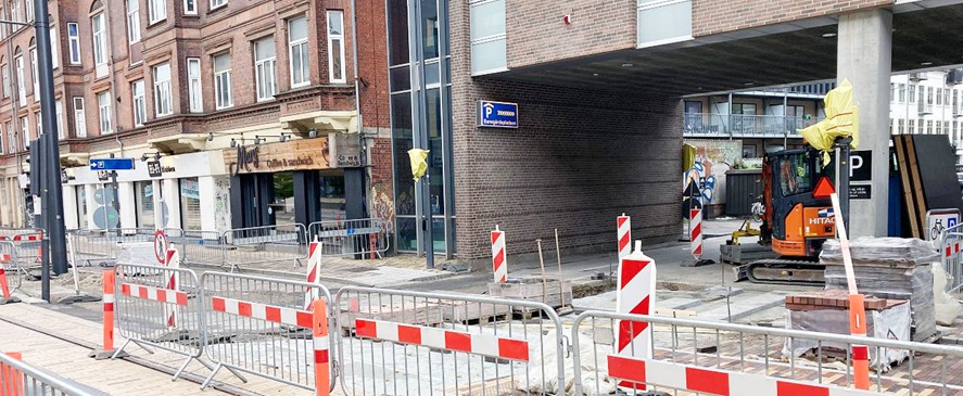 Tidligere på måneden gik letbanens entreprenør i gang overfor Odense Banegård Center med udkørselsbanen fra P-pladsen bag Fyens Stiftstidende. Her skal der lægges klinker ovenpå en betonplade for at sikre holdbarheden.