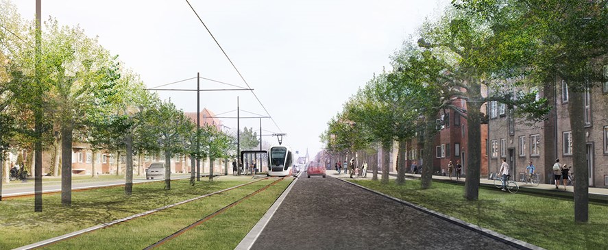 Der er også et princip om, at der ikke bliver fældet træer, før pladsen rent faktisk skal bruges. Det betyder for eksempel, at en del træer får lov at blive stående, indtil selve letbanebyggeriet går i gang fra 2017 og frem.