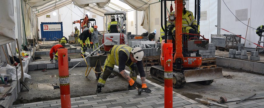 Arbejdet foregår inde i de opsatte telte og vil primært bestå af brolægningsarbejde, der vil dog i forbindelse med dette arbejde blive kørt med mindre maskineri samt tilskåret granit.