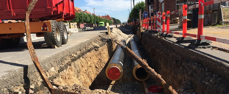 Fjernvarme Fyns arbejde med at lægge nye rør forud for letbanebyggeriet er nu nået til den østlige side af jernbanebroen på Middelfartvej. Hér er gravearbejdet derfor begyndt på strækningen op mod Grønløkkevej.