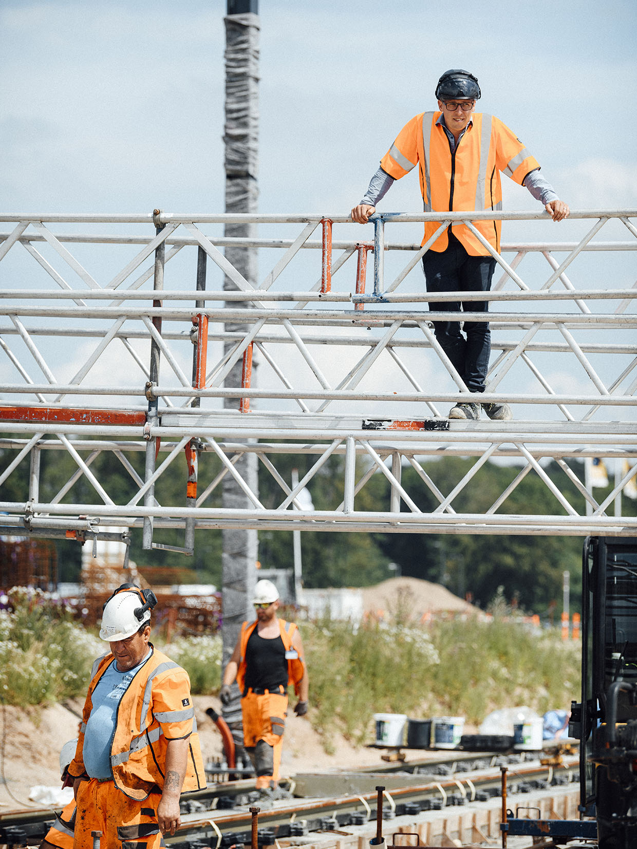 Jakkesæt eller orange vest, skrivebord eller skurvogn. Lige meget hvordan man arbejder, skal alle arbejde sammen. Fra den tidligste planlægning over de mange udbud til det forberedende arbejde, ledningsflytningerne, anlægsarbejdet og det egentlige sporarbejde.