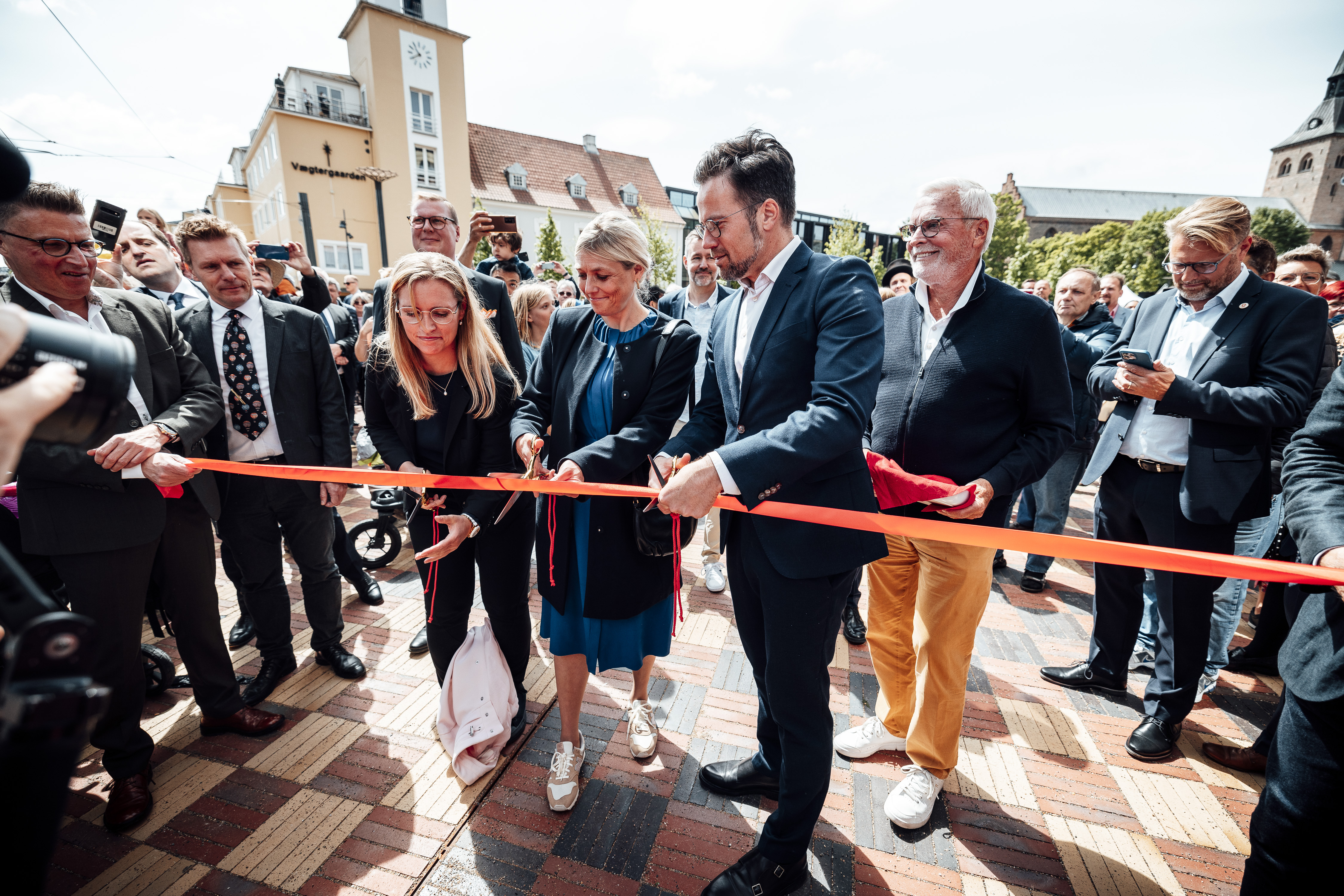 På Flakhaven blev letbanen officielt indviet med taler af borgmester Peter Rahbæk Juel, transportminister Trine Bramsen, regionsrådsformand Stephanie Lose, rådmand Søren Windell og bestyrelsesformand Jesper Rasmussen, der hver især satte ord letbanens betydning for Odense. MessingEnsemblet, Rock Nalle, Sanne Gryholt og PATINA skød for alvor festen i gang med musik, fællessang og god stemning.