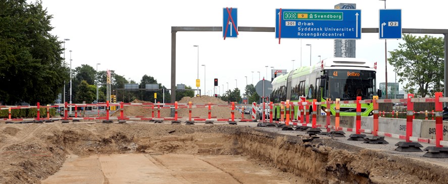 Før selve sporarbejdet gik i gang, skulle byen forberedes til letbanen. Når et otte meter bredt spor skal smelte sammen med resten af byen, så påvirker det nemlig udformningen af veje, cykelstier og fortove, som derfor skulle bygges om.
