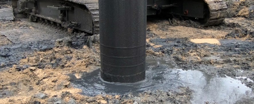 Når jorden er blød og fugtig, kan det være nødvendigt at sikre fundamentet til et nyt byggeri med betonpæle, der stikker dybt ned i jorden. Det er blandt andet tilfældet på Nyborgvej, hvor Odense Letbane skal opføre en transformerstation.